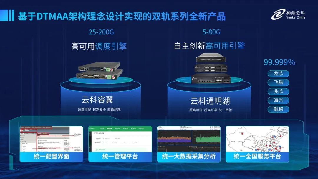 为了更好的适配双轨超高可用架构,神州云科研发了容翼系列和云科通明湖信创系列两大应用交付控制器产品。